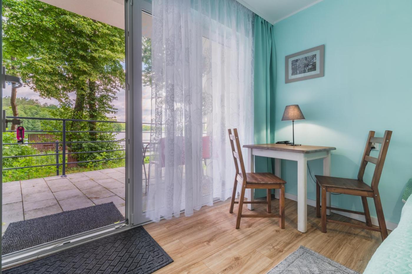 Pokój Dwuosobowy z widokiem na jezioro. W opcji zakwaterowania znajduje się 1 łóżko. Pokój Dwuosobowy - 2 osobowy.