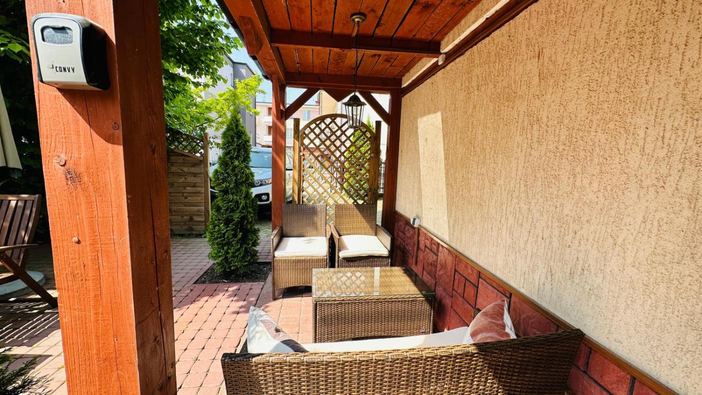 Apartament z tarasem. Boasting 2 bedrooms, this apartment has 1 bathroom with a shower, a seating area and terraceyou can relax. Guests can make meals in the kitchenette that features a refrigerator, kitchenware, a microwave and an electric kettle. Featuring a balcony with garden views, this apartment also features a wardrobe and a flat-screen TV. The unit offers 3 beds. Apartament - 6 osobowy. Powierzchnia pokoju ok.: 30 mkw. ;