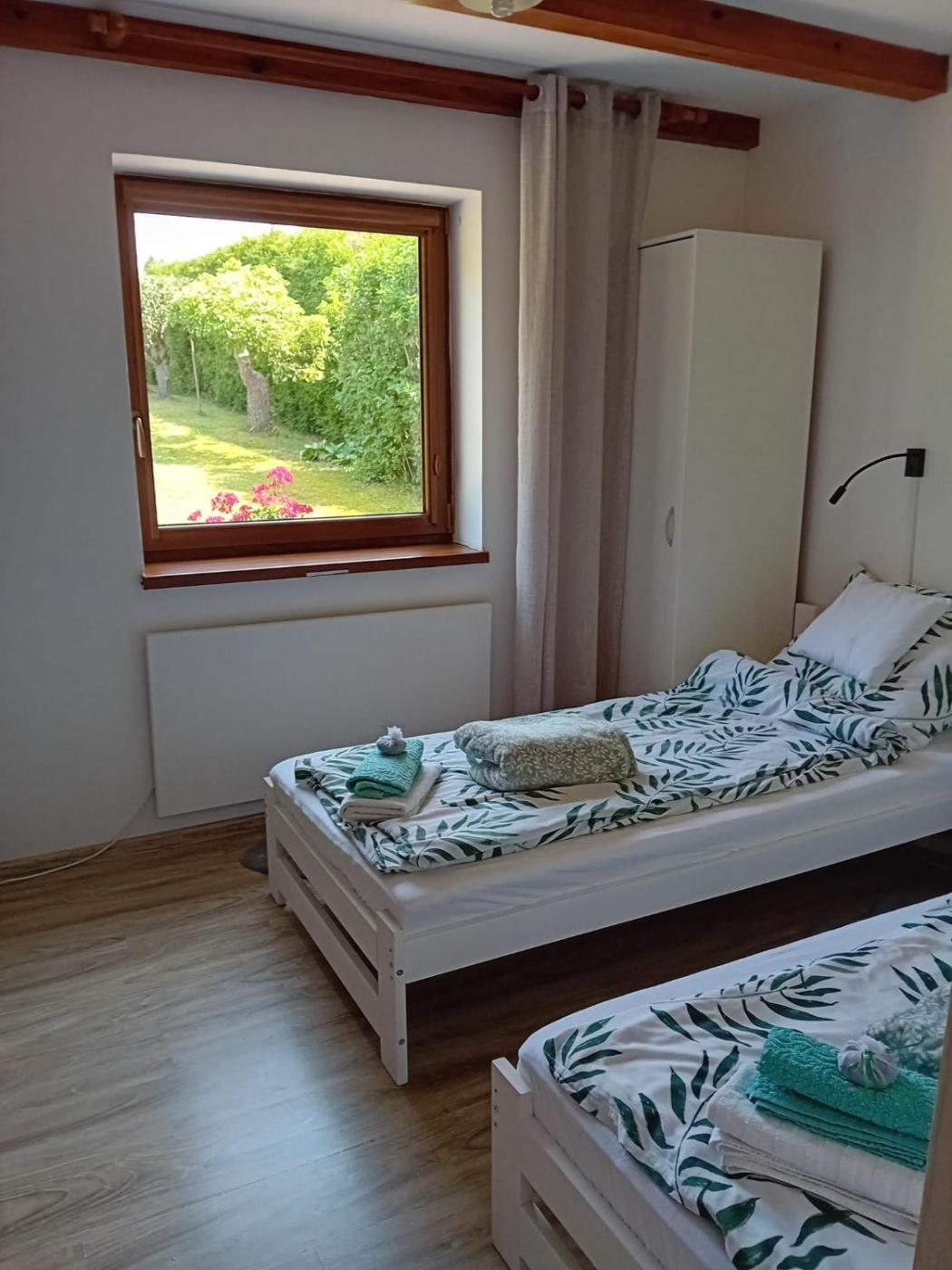 Dom z 2 sypialniami. This holiday homes special feature is the fireplace. Featuring a private entrance, this holiday home comprises 1 living room, 2 separate bedrooms and 2 bathrooms with a walk-in shower and a hairdryer. Guests will find a stovetop, a refrigerator, a dishwasher and kitchenware in the kitchen. The holiday home also provides guests with a barbecue. The holiday home provides a washing machine, a tea and coffee maker, a seating area as well as a terrace with garden views. The unit offers 3 beds. Dom wakacyjny - 6 osobowy. Powierzchnia pokoju ok.: 63 mkw.