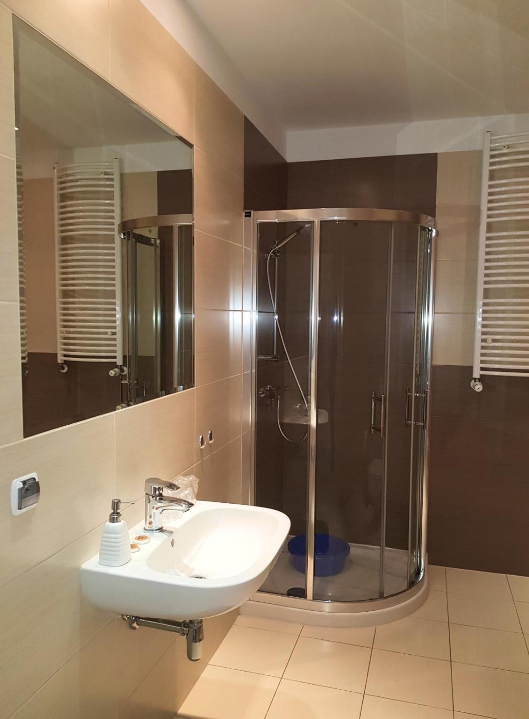 Apartament z tarasem. This apartment comprises 1 bedroom, kitchenette, a terrace and 1 bathroom with a shower. Guests can make meals in the kitchenette that comes with a stovetop, a refrigerator, kitchenware and a tea and coffee maker. The apartment provides soundproof walls, a wardrobe, a tiled floor, heating and a flat-screen TV. The unit offers 2 beds. Apartament - 3 osobowy. Powierzchnia pokoju ok.: 24 mkw. ;
