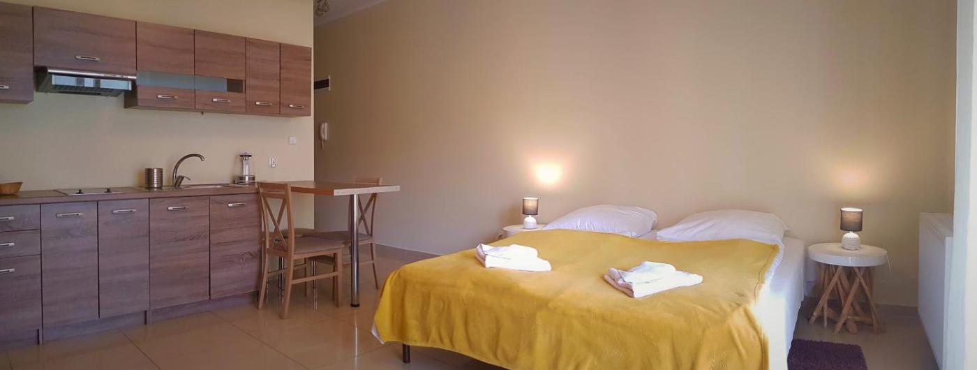 Apartament typu studio. This apartment comes with 1 bedroom, kitchenette, a terrace and 1 bathroom with a shower. Guests can make meals in the kitchenette that features a stovetop, a refrigerator, kitchenware and a tea and coffee maker. The apartment features soundproof walls, a wardrobe, a sofa, heating and a flat-screen TV. The unit has 2 beds. Apartament - 3 osobowy. Powierzchnia pokoju ok.: 30 mkw. ;