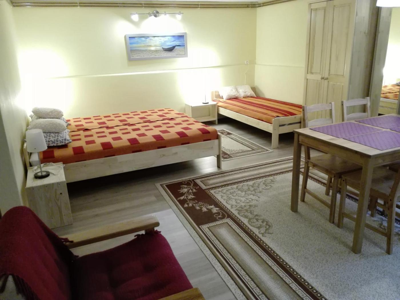 Pokój czteroosobowy z prywatną łazienką. Ten pokój czteroosobowy znajduje się w suterenie i dysponuje oddzielnym wejściem, kuchenką mikrofalową oraz zestawem do parzenia kawy i herbaty. Pokój Czteroosobowy - 4 osobowy. Powierzchnia pokoju ok.: 34 mkw.